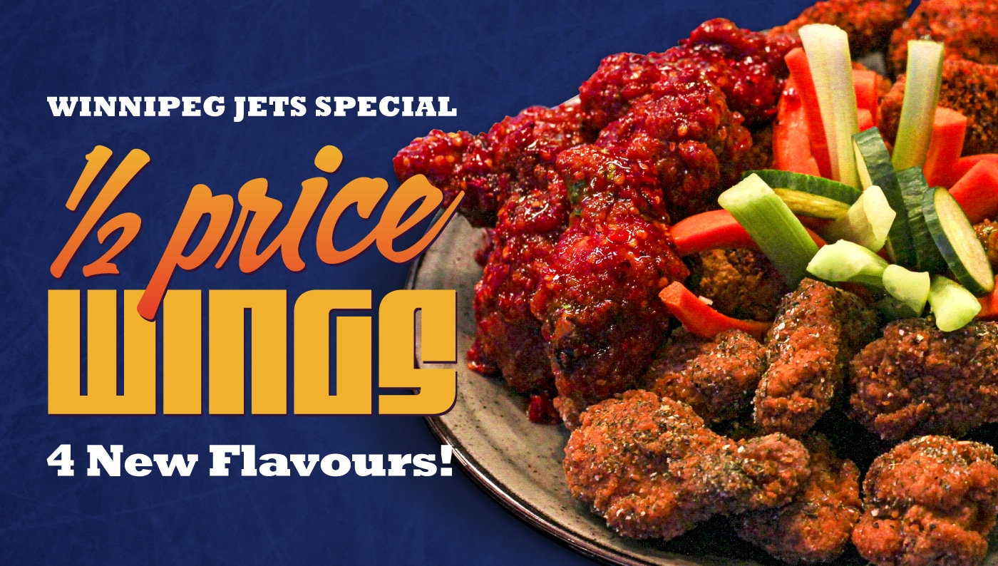 Our wings are dusted and cooked to a crispy finish, then sauced & tossed with one of our 21 flavours. Served with ranch dip, cucumber slices, carrot sticks, and celery sticks. Available for $9 per pound.